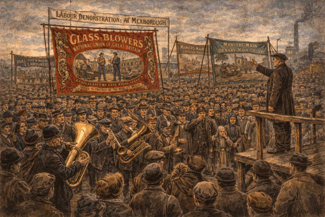 A demonstration took place on Saturday under the auspices of the Mexborough and District Federated Trades Council. About 5,000 persons took part in the proceedings, whose object was to express sympathy with and promise support of the glass-blowers and the Hull dock labourers. There was a procession, headed by bands and banners, and the Manvers Main, Denaby Main, Wath Main, and Thrybergh Hall miners, as well as the glass-blowers and potters of the district, took part in it.